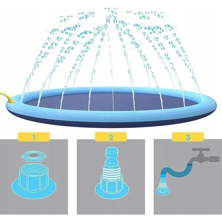 Килимок має діаметр 100 см, що робить його зручним для дрібних і середніх собак. Легкий в установці, зручний для використання у дворі, на терасі або газоні, компактно складається для зберігання.