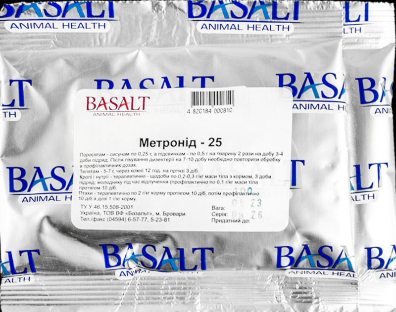 М'ясо від тварин, яким давали метронідазол, можна використовувати для харчових цілей через 6 днів після припинення лікування, птицю – через 4 дні, молоко – 3 дні.