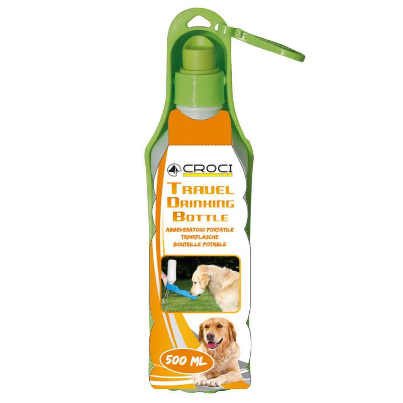Про товар Пляшка дорожня для собак CROCI, колір асорті, пластик, 500 мл
