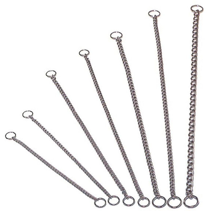 [1]Дросельний ланцюжок-нашийник для собак TATRAPET, 2 ммВикористовується як ринговка для виставок і під час повсякденного вигулу.Матеріал ланцюжка-нашийника - хромована сталь, виріб можна брати на прогулянку за будь-яких погодних умов, водночас він не змінює згодом своїх якостей і кольору, не подразнює шкіру тварини, не забарвлює і не "витирає" шерсть.Коротка ланка з огранюванням має чудовий вигляд на вихованцеві в рингу, не відволікаючи уваги від самого собаки.Завдяки короткій ланці, нашийник підходить для собак з будь-яким типом і довжиною шерсті, при цьому не травмує її в процесі носіння.Вибирайте колір, довжину і діаметр ланцюжка, керуючись вагою і розмірами свого собаки.Необхідно, щоб ланцюжок був на 5-6 см більшим за обхват шиї вихованця.