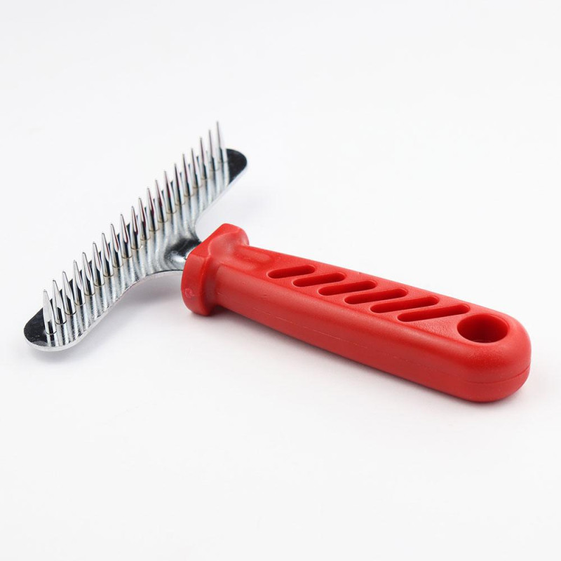 [1]Зручний гребінець-граблі Пухнастики з двома рядами металевих зубців для розчісування та розплутування ковтунів у собак із середньою та довгою шерстю.Допомагає дбайливо розчісувати шерсть тварини, розділяючи волоски між собою, що дає змогу ефективно розплутувати ковтуниУ разі щоденного використання запобігає сплутуванню шерсті та поліпшує кровообіг у клітинах шкіриОснащений заокругленими зубцями з хромованої нержавіючої сталі, аби не травмувати шкіру та не спричиняти дискомфорт тварині під час вичісуванняНайкраще підходить для вичісування тварин із середньою та довгою шерстюПластикова ручка забезпечує зручне утримання інструмента в руці