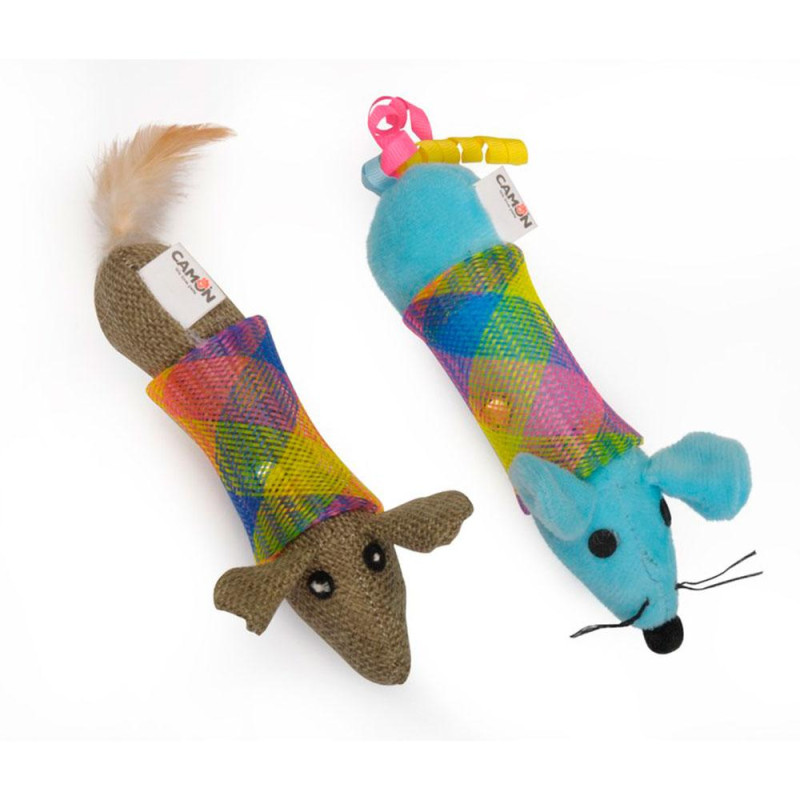 Іграшка для котів CAMON мишка пружинна з поліестеру та пластика з дзвіночком, в двох кольорах, 16 см