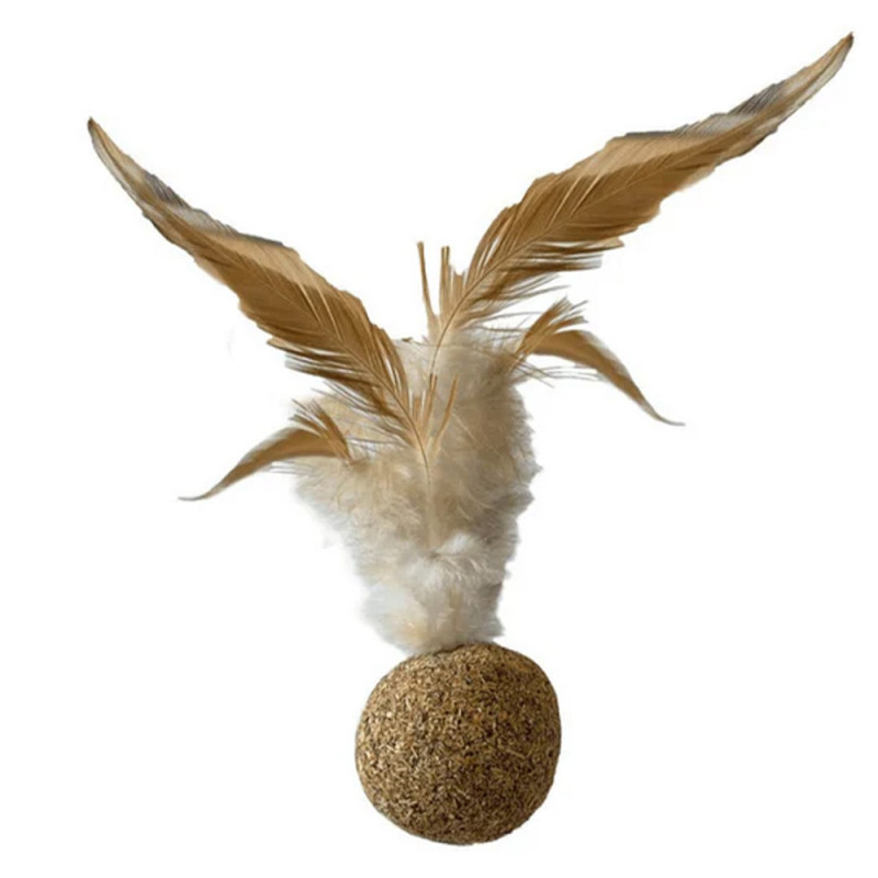 Іграшка для котів CROCI М'ячик з котячої м’яти сріблястої лози та з пір'ям - EUPHORIA BALL, 3 см