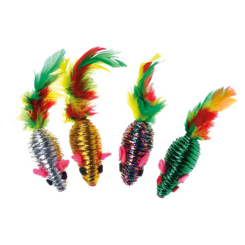 Іграшка для котів TETRAPET, мотузкова мишка з кольоровим пір'ям, 5 см