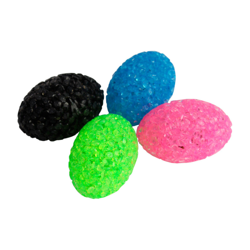Набір іграшок для котів "Яйце гліцеринове мікс" 25 шт. Розмір 3*4,5 см. Кольори в наборі: блакитний, рожевий, зелений, чорний. Має бубонець, який цікаво дзвонить та заволікає Вашого улюбленця до гри.