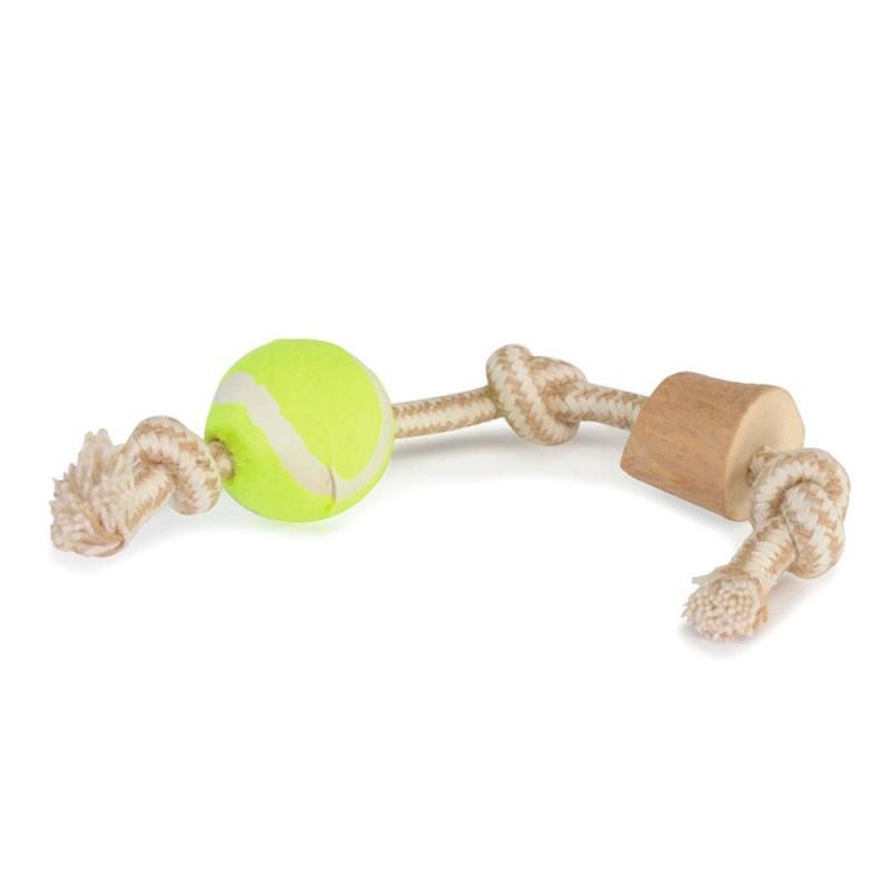 Відгуки Іграшка для собак CAMON шматок з кавового дерева на мотузці з тенісним м'ячем, 28 см, d.2/3см,*3 см