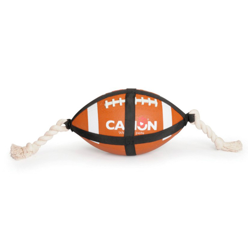 Іграшка для собак CAMON м'яч гумовий для американського футболу з мотузяними ручками, 27,5 см