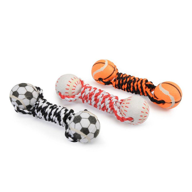 [1] Іграшка для собак – Спортивні м’ячі (баскетбольний/бейсбольний/футбольний) з канатом-гризунцем, 5 смЯскрава, інтерактивна та міцна іграшка для собак, що обожнюють активні ігри та жування!Іграшка у вигляді маленького спортивного м’яча (на вибір: баскетбольний, бейсбольний або футбольний) доповнена міцним нейлоновим канатом, який виконує роль гризунця. Ідеально підходить для ігор на перетягування, апорт, а також для догляду за зубами.Переваги:Оригінальний дизайн у вигляді спортивного м’яча – приваблює собакуМіцний канат із нейлону – сприяє очищенню зубів і масажу ясенСтимулює фізичну активність та інстинкти жуванняПідходить для дрібних і середніх порід собакДіаметр м’яча: 5 смЦя іграшка поєднує в собі гру, турботу про здоров’я ротової порожнини та емоційне розвантаження.Camon – іграшки, які справді подобаються собакам!