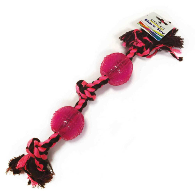 Іграшка для собак CROCI канат грейфер Джумбо 2 силіконових м'яча, 40/7 см