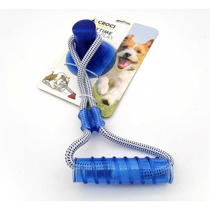[1]Іграшка для собак CROCI Pull&Play Циліндр на мотузці з присоскою блакитний, 36х13 смІдеальна іграшка, яка розважить собаку і спонукає його до гри, знизивши стрес.Ви можете розмістити його на будь-якій гладкій поверхні: на підлозі, на столі або на кахлі у ванній, щоб розважати собаку.Для кращої фіксації змочіть дно присоски водою.Присоска утримує іграшку на місці і дозволяє собаці тягнути її, не втрачаючи хватки. Також корисний для чищення зубів.Іграшки CROCI призначені для активної гри, безпечні для тварини, міцні та надійні, не травмують зуби і ясна. Підходять для дорослих собак і для цуценят.Іграшку можна використовувати як для гри, так і для дресирування.Собаки завжди люблять щось гризти, і найчастіше покупка іграшки є необхідністю.Зазвичай собаки гризуть все, що потрапляє їм у пащу, і якщо ви не хочете розлучитися зі своїм взуттям, міняти двері, килими та інші корисні речі - потіште свого вихованця іграшкою.Таким чином ви відволікаєте свого собаку від псування майна та цінних речей і дозволите йому розробляти щелепні м'язи.Переваги:- масажує ясна і розвиває щелепний апарат- з безпечного матеріалуМатеріал: резина+текстиль