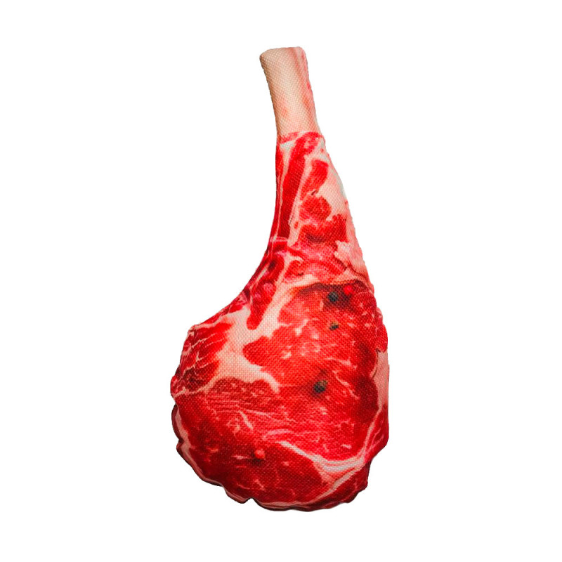Іграшка для собак "Стейк на кістці". Виготовлена із щільного, водонепроникного текстильного матеріалу - оксфорд. Має пищалку, з якою Вашому песику буде дуже цікаво гратися. Розмір 19*11 см.