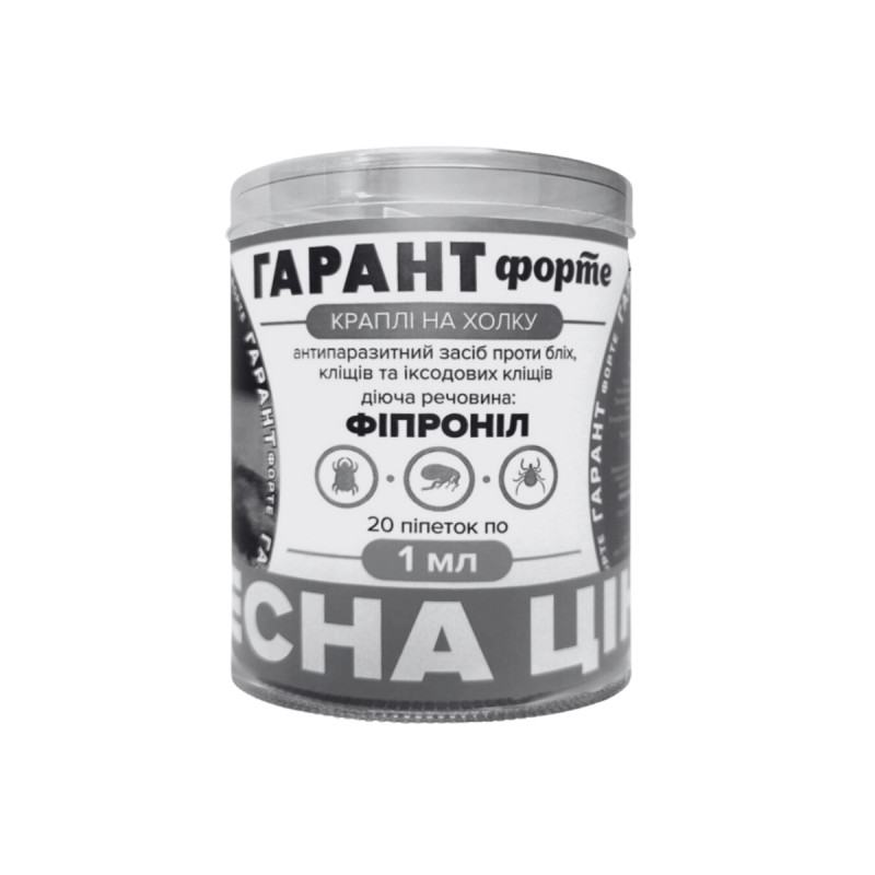 У лінійці ГАРАНТ форте представлені краплі для котів та собак на діючій речовині: фіпроніл.