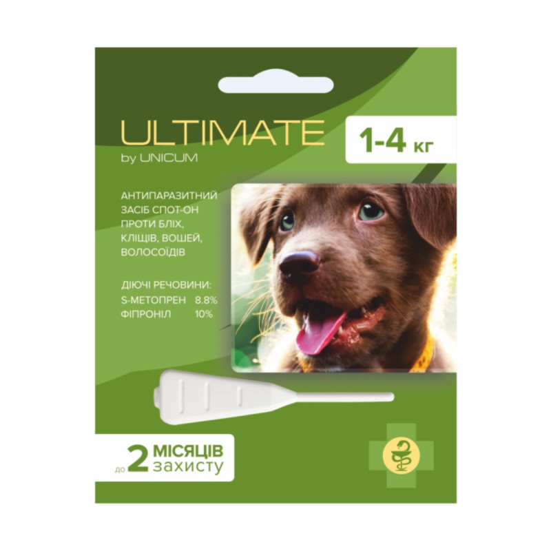 Краплі від бліх, кліщів, вошей та власоїдів ULTIMATE для собак 1-4 кг (s-метопрен, фіпр) 0,6 мл
