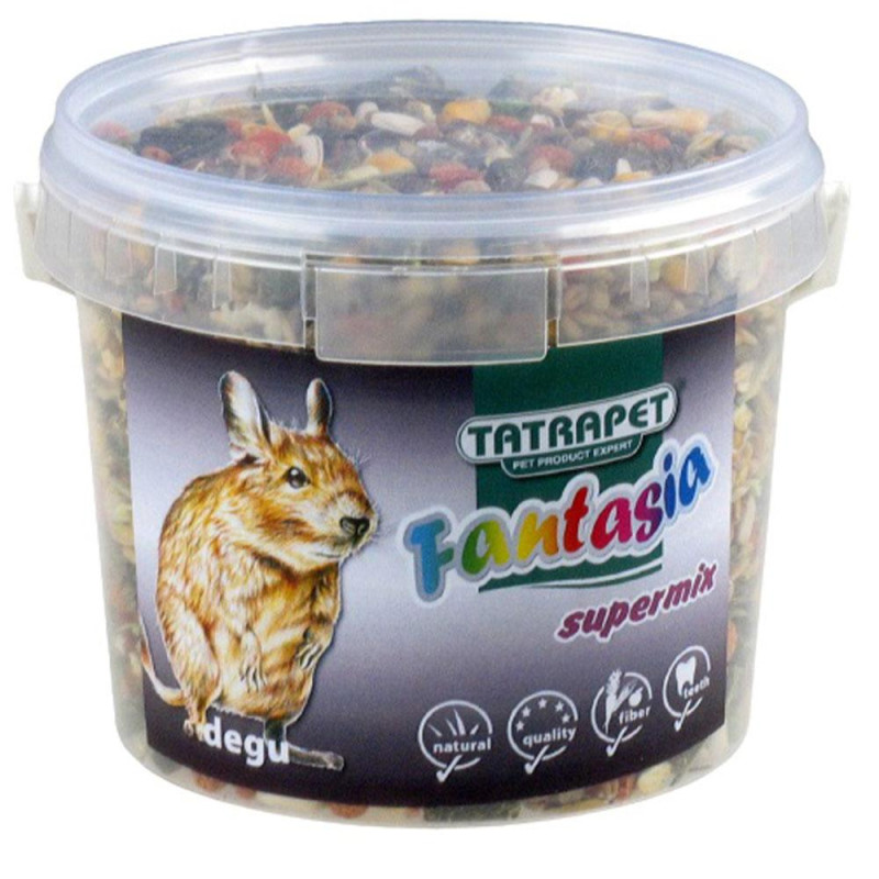 [1]Корм для гризунів TatraPet Fantasia суперміксКорм преміум-класу для гризунів! Багатий і різноманітний склад, збалансований з урахуванням потреб улюбленців!Корм складено за рекомендаціями ветеринарів і власників декоративних гризунів. Суміш насіння і зерна, збагачена фруктами, овочами, горіхами, забезпечує улюбленців усім необхідним для міцного здоров'я, довгого життя, гарного імунітету, чудового зовнішнього вигляду і відмінного настрою. Насіння льону - необхідна добавка до раціону гризунів. Льон містить жирні кислоти, вітаміни групи В, фосфор і селен. Комбікорм містить комплекс необхідних мінеральних речовин і клітковини.Переваги:- нормалізація обміну речовин і профілактика ожиріння- гризуни можуть вибрати необхідне для себе- поліпшення травлення і зниження наслідків стресу- зміцнення імунітетуРекомендації: Годувати 2-3 рази на день невеликими порціями, корм щоразу насипати в чисту суху годівницю.Слідкуйте за тим, щоб у поїлці завжди була свіжа вода.