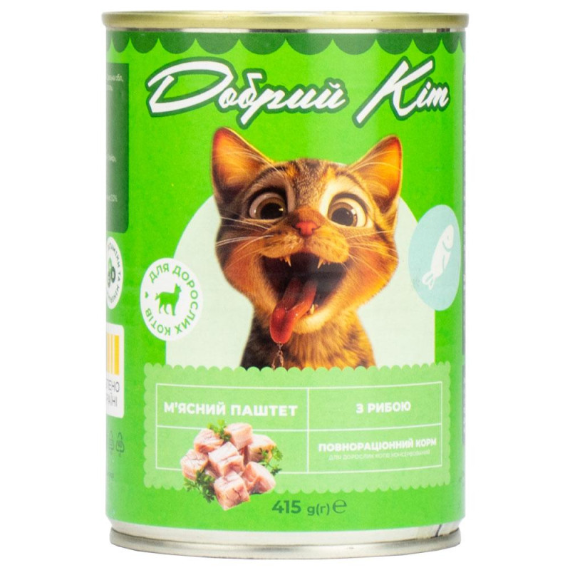 [1]Повнораціонний корм для дорослих котів консервований. М'ясний паштет з рибою ТМ «Добрий Кіт».Добрий Кіт - це повноцінне харчування, у складі якого містяться тільки натуральні продукти та велика частина корисних мінералів і вітамінів, що допомагають вашому улюбленцю бути здоровим і задоволеним.Збалансований корм для повноцінного харчування домашніх улюбленців. Велика кількість білка, що міститься в м'ясній складовій, та достатня кількість жиру збагачують організм тварини, надають їй сили та активності протягом цілого дня. Натуральний корм у консервованому вигляді для Вашого улюбленця не містить барвників, ароматизаторів та сої, виготовлений лише з натурального м'яса та м'ясо-продуктів. Готовий для вживання без додаткових зусиль. Рекомендується подавати до вживання корм за температури не нижче кімнатної.Переваги корму:1. Основне джерело білка міститься в м'ясі та м'ясо-продуктах;2. Високий вміст м'ясної складової - не менше 58%;3. відмінне поїдання;4. З мінералами та вітамінами;5. Консистенція корму зручна у використанні та не потребує додаткових зусиль;6. Компоненти корму добре перетравлюються.Склад: не менше 58%* м'ясних інгредієнтів та риби (зокрема з курки – 39%, з яловичини – 15%, з риби – 4%), злаки.Технологічні добавки: гуарова камедь, ксантанова камедь, декстроза. Поживні добавки (на 1 kg (кг) корму): таурин (За370) - 225 mg (мг); вітамінно-мінеральний комплекс: вітамін D3 (3а671) – 75 IU (MO), вітамін Е (3а700) - 22,5 mg (мг), вітамін В1 (3а821) – 2,2 mg (мг), вітамін В2 (За825і) – 1,6 mg (мг), вітамін В6 (3а831) – 1,2 mg (мг), вітамін В12 – 11,2 mcg (мкг), ніацинамід (За315) - 15 mg (мг), кальцій-D-пантотенат (3а841) - 3,7 mg (мг), фолієва кислота (3а316) - 0,4 mg (мг), біотин (3а880) - 30 mcg (мкг); мікроелементи: залізо (3b103) – 13,5 mg (мг), мідь (3b405) -1,0 mg (мг), кремній (Е551a) - 15 mg (мг), цинк (3b605) – 12,5 mg (мг), марганець (3b502) – 1,0 mg (мг), йод (3b202) – 0,22 mg (мг).Енергетична цінність (калорійність) на 100 g (г) корму:339,1 кЈ (кДж) /81,0 kcal (ккал).Поживна цінність (аналітичний склад): сирий протеїн – 8,0%, сирий жир – 5,7%, сира зола – 1,6%, сира клітковина – 0,3%. Вміст вологи: 79,0%.Для дорослих котів усіх порід віком від 1 року.Рекомендації щодо годування: добова норма годування 70 g (г) на 1 kg (кг) ваги тварини. Норма годування може змінюватися залежно від віку, рівня активності та середовища перебування тварини. Порція корму повинна бути кімнатної температури. Свіжа питна вода повинна бути доступна тварині у будь-який час.Умови зберігання закритого корму: зберігати в чистому, добре вентильованому приміщенні за температури від 0°C до +25°С та відносної вологості повітря не вище 75%.Строк придатності: 36 місяців від дати виробництва.Дата виробництва та дата «Вжити до» зазначені на кришці/дні банки. Номер партії (L) відповідає даті виробництва.