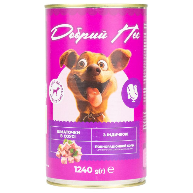 Корм Добрий Пес, для дорослих собак шматочки з індичкою в соусі, 1240 гр. ж/б