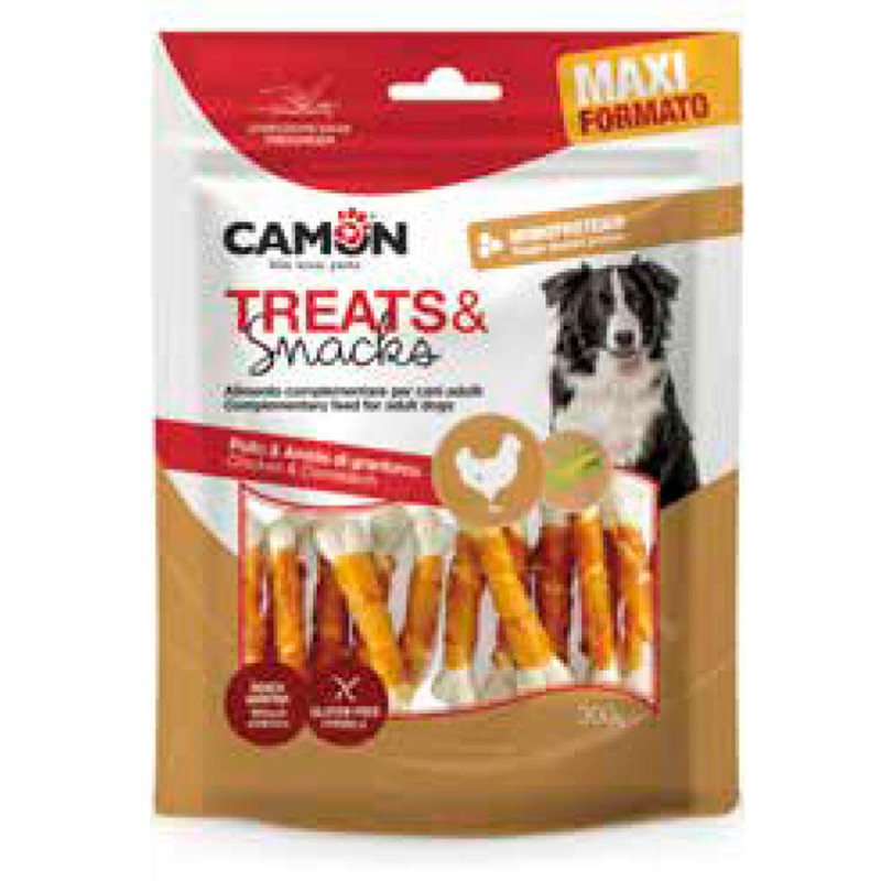 Ласощі для собак CAMON м'ясні кісточки з кукурудзяного крохмалю з куркою, 300 гр, 8 см