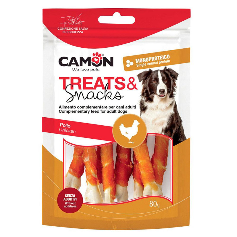 Ласощі для собак CAMON м'ясні кісточки з кукурудзяного крохмалю з куркою, 80 гр, 8 см