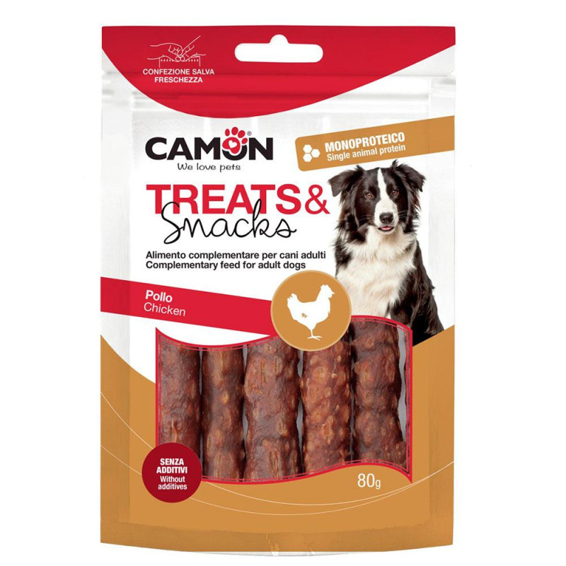 Відгуки Ласощі для собак CAMON м'ясні курячі палички, смажені на пару, 80 гр, 11*1,5 см