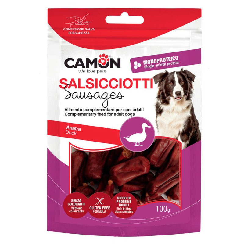 Ласощі для собак CAMON м'ясні міні ковбаски з качки, 100 гр, 4*1,5 см