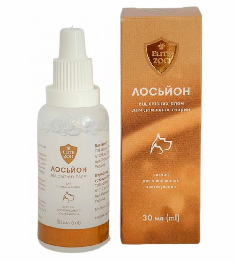 Для видалення слізних плям навколо очей тварин застосовувати невелику кількість лосьйону раз на день.