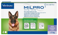 Мильпро призначають собакам з лікувальною і профілактичною метою при нематодозах, цестодозах і змішаних нематодо-цестодозных інвазіях, спричинених як личинкові формами, так і статевозрілими цестодами і нематодами наступних видів: