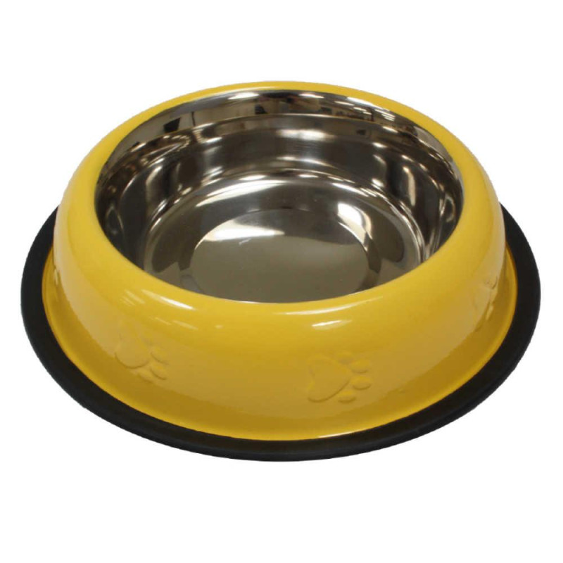 [1]Миска для собак з нержавіючої сталі з карбуванням на гумі CROCI, жовтаМиска легко миється - можна мити в посудомийній машині, не гнеться, не вбирає запахи, має тривалий термін експлуатації.Стильний дизайн миски впишеться в будь-який інтер'єр.Довговічна і легко підтримується в чистоті. Не іржавіє. Не ковзає по підлозі завдяки гумовій основі.Зручна і практична.Може використовуватися для їжі або води.Металева миска для годування добре миється, навіть засохлі частинки корму відмиваються без зайвих проблем.Щоб уникнути появи подряпин і втрати зовнішнього вигляду, аксесуар не рекомендується мити пристосуваннями з абразивною поверхнею.Розміри: 240 мл - 16 см710 мл - 23 см
