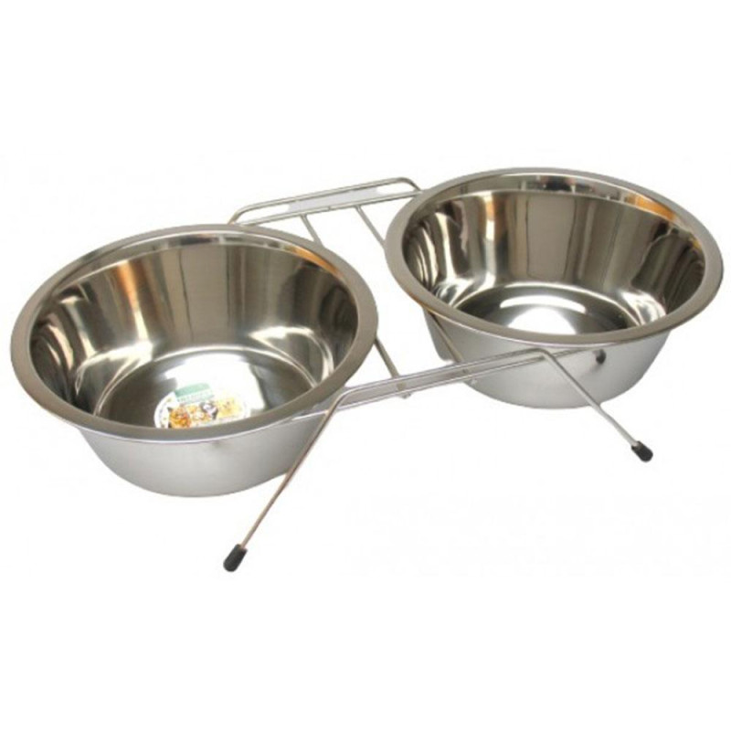 Миска подвійна TETRAPET з нержавіючої сталі на підставці, 2 x 1,8 л /19 см