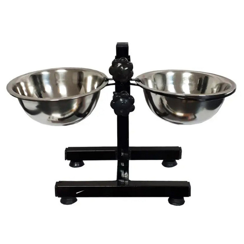 [1]Підставка з мисками для собак регульована з нержавіючої сталі Підставка виготовлена з металу, має гумові ніжки, завдяки чому не ковзає на підлозі та не дряпає її. Миски виготовлені з нержавіючої сталі. Миски можна замінити новими. Легко виймаються і вставляються. Зручні й практичні. Можуть використовуватися для їжі або води одночасно. Стильний комплект прикрасить будь-який інтер'єр. Комплект мисок із підставкою можна підібрати під різний розмір та зріст тварини. нержавіюча сталь 2 сталеві миски на підставці металева підставка  не ковзає завдяки гумовим ніжка