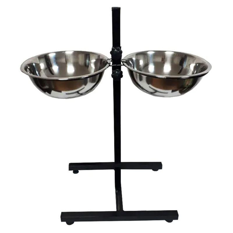 [1]Підставка з мисками для собак регульована з нержавіючої сталі Підставка виготовлена з металу, має гумові ніжки, завдяки чому не ковзає на підлозі та не дряпає її. Миски виготовлені з нержавіючої сталі. Миски можна замінити новими. Легко виймаються і вставляються. Зручні й практичні. Можуть використовуватися для їжі або води одночасно. Стильний комплект прикрасить будь-який інтер'єр. Комплект мисок із підставкою можна підібрати під різний розмір та зріст тварини. нержавіюча сталь 2 сталеві миски на підставці металева підставка  не ковзає завдяки гумовим ніжка