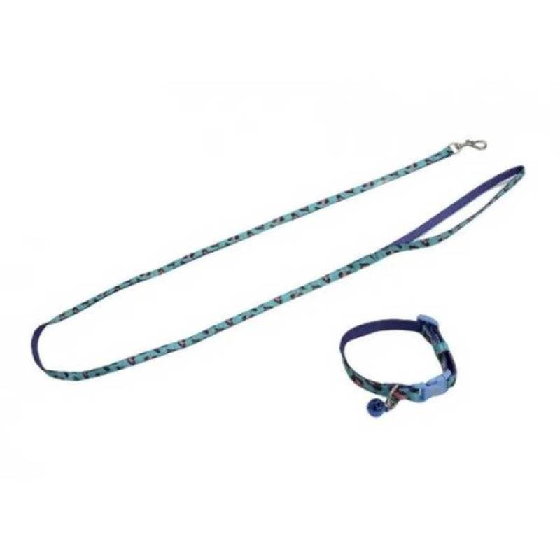 Про товар Набір нашийник + поводок CROCI MINI JUNGLE, з дзвіночком, блакитний, нейлон, 16-24х0,8см / 0,8х120см