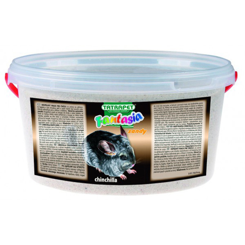 [1]Пісок для купання шиншил TatraPet Fantasia, у відрі 1.5 кгШиншилам для купання потрібен спеціальний пісок, адже краса і здоров'я хутряного покриву і шкіри шиншили залежать від періодичності купання і якості піску.Ідеальним варіантом для купання шиншил є вулканічний пил. Він відмінно очищає густе хутро тварин, не пошкоджуючи його, поглинає вологу і жир зі шкіри, а також має антисептичні властивості. Це дуже дрібний кремнієвий пісок, змішаний з дрібною крейдою