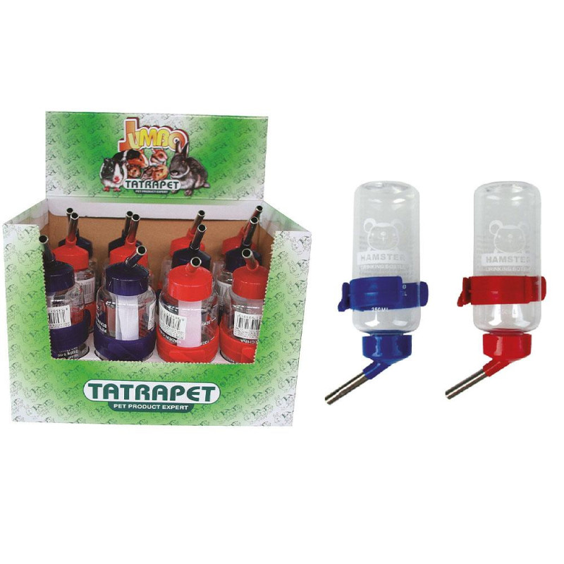 [1]Поїлка для гризунів з універсальним кріпленням.Потреба у воді - головна для всіх живих організмів. Ця поїлка найбільш поширений і зручний поїльник для хом'яків та інших гризунів. Усередині трубочки спеціальна кулька на пружинці - ніпель. Конструкція підвішується на прути клітки. Коли звірятко відчуває спрагу, воно підходить до поїлки і натискає на кульку язиком, після чого невелика порція води надходить до рота.Переваги: Економія простору; Легкість використання; Безпека; Чистота.Матеріал: пластик.Інструкція із застосування:Залити чисту воду, закрутити кришку.Струснути поїлку 2-3 рази в положенні трубочкою вниз.Звертаємо увагу на те, що в цій позиції недоступна опція вибору кольору, оскільки від партії до партії цей виріб приходить різних кольорів!