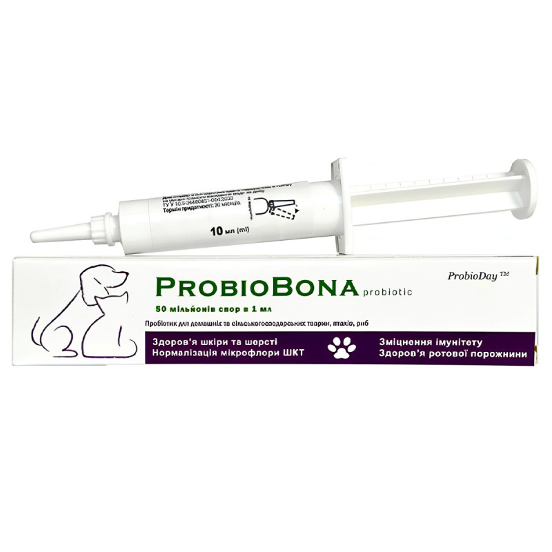: ProbioBona – суспензія 5 видів Bacillus (спори В. subtilis, В. amyloliquefaciens, В. licheniformis, В. pumilus, В. megaterium),