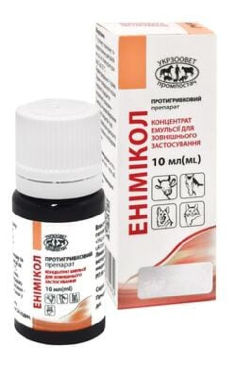 Енімікол концентрат емульсії при дерматомікозах у великої рогатої худоби, коней, собак і кішок, 10 мл