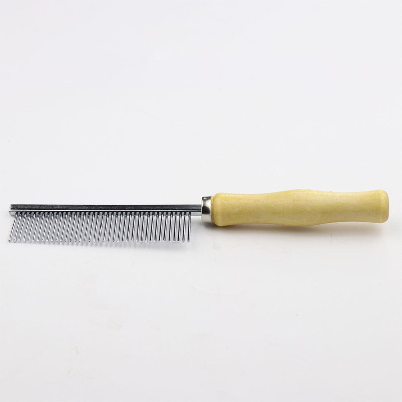 [1]Гребінець Пухнастики односторонній Довгий зуб для котів і собак.Ідеально підходить для щоденного розчісування шерсті. Закруглені кінчики не пошкоджують шкіру тварини. Дуже близькі зуби, які підходять для тварин з м'яким, довгим і коротким волоссям.Гребінець зі сталевими зубцями. Дерев'яна ручкаУсуває мертве волосся, бруд, роблячи шерсть м'якою, бархатистою і блискучою.