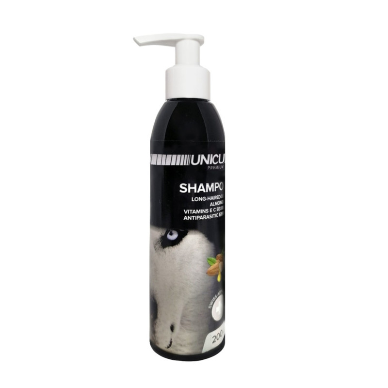 Шампунь UNICUM premium з мигдальною олією призначений для гігієнічного догляду за довгошерстими собаками та цуценятами.