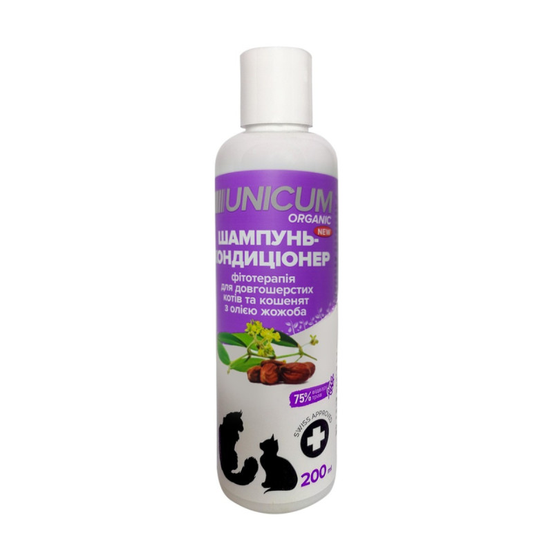 Шампунь-кондиціонер для довгошерстих котів з маслом жожоба UNICUM ORGANIC, 200 мл/10