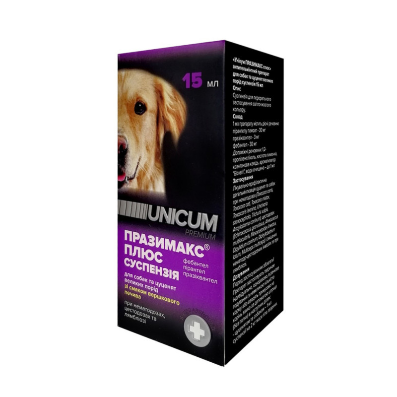 Суспензія Unicum Празимакс Плюс для собак та цуценят великих порід. Суспензія Unicum Празимакс Плюс призначена для догляду за здоров'ям вашого улюбленця.
