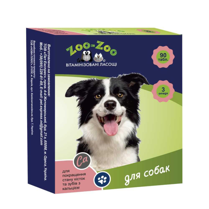 [1]Вітамінізовані ласощі ZOO-ZOO для собак кальцій для покращення стану кісток та зубів, упаковка 90 таблетокВміст кальцію в необхідній кількості в раціоні годівлі дуже важливий для нормального розвитку та функціонування організму собак, починаючи з періоду інтенсивного зростання цуценя та літнього віку тварини. Кальцій – це основний компонент кісткової тканини, що забезпечує міцність кісток. Він також потрібен для згортання крові, для скорочення м'язів, для правильного росту зубів та кісток, хряща вушної раковини, нормалізує артеріальний тиск, регулює функцію нервової системи.Вітамінізовані ласощі для собак ZOO-ZOO виготовлені на основі рослинних компонентів у процесі кріодеструкції. Принцип цієї унікальної технології полягає у розкритті клітинної мембрани рослинної клітини під впливом низьких температур (-196°С), що сприяє збереженню максимальної кількості біологічно активних речовин і практично виключає руйнування.Шабельник містить органічні кислоти, вітамін С, каротин, сапоніни, дубильні речовини, катехіни, флавоноїди, фенолкарбонові кислоти та їх похідні, а також ефірну олію, слизи, смоли, камеді.Склад:ШабельникКальційПробіотикиОмега-3 кислотиЕкстракт харчових дріжджівВітамінно-мінеральний комплексВ 1 таблетці Вітамінізованих ласощів для собак ZOO-ZOO кальцій міститься: протеїну не менше 12%, жиру не менше 1%, кальцію не менше 0,4%, фосфору не менше 0,5%, Омега-3 не менше 3 мг, біотину 5 мкг.Склад:ШабельникКальційПробіотикиОмега-3 кислотиЕкстракт харчових дріжджівВітамінно-мінеральний комплексВ 1 таблетці Вітамінізованих ласощів для собак ZOO-ZOO кальцій міститься: протеїну не менше 12%, жиру не менше 1%, кальцію не менше 0,4%, фосфору не менше 0,5%, Омега-3 не менше 3 мг, біотину 5 мкг.