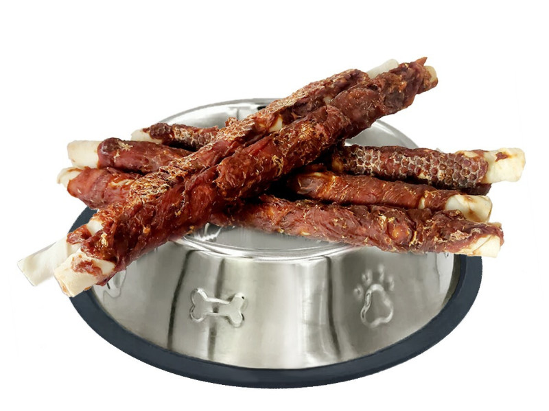 Про товар В'ялене м'ясо качки на пресованій кістці з сиром'ятної шкіри, 28 см, (≈5 шт), 500г, 20шт/ящ.